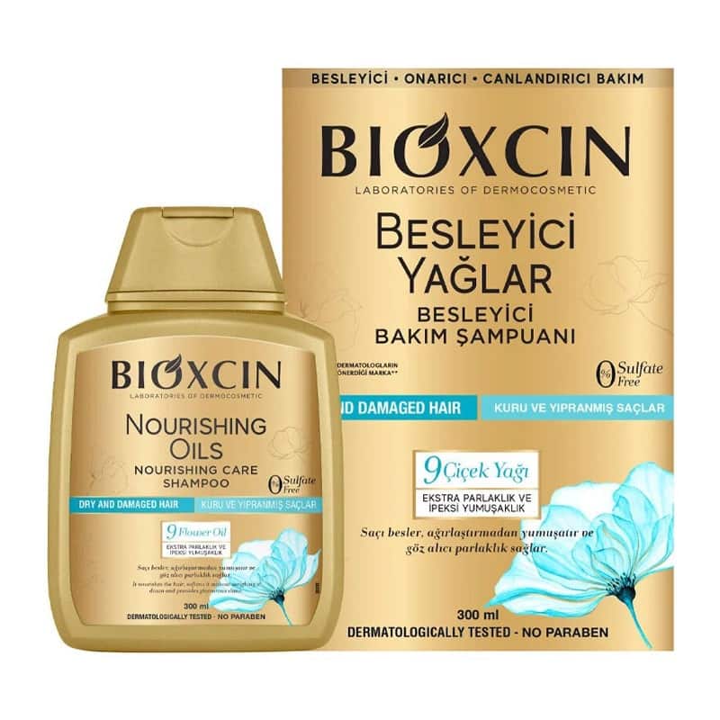 شامپو روغنهای مغذی بیوکسین (Bioxcin Nourishing Oils Shampoo) یک شامپوی سولفاتفری و بسیار ملایم است که برای موهای خشک، شکننده، دکلره، رنگشده و حتی کراتینهشده طراحی شده است. ترکیب حاوی ۹ روغن گیاهی ارزشمند، ویتامین B5 و کمپلکس BioComplex B11 باعث تقویت ریشه و ساقه مو، کاهش ریزش، رفع خشکی و بهبود حالتپذیری مو میشود.